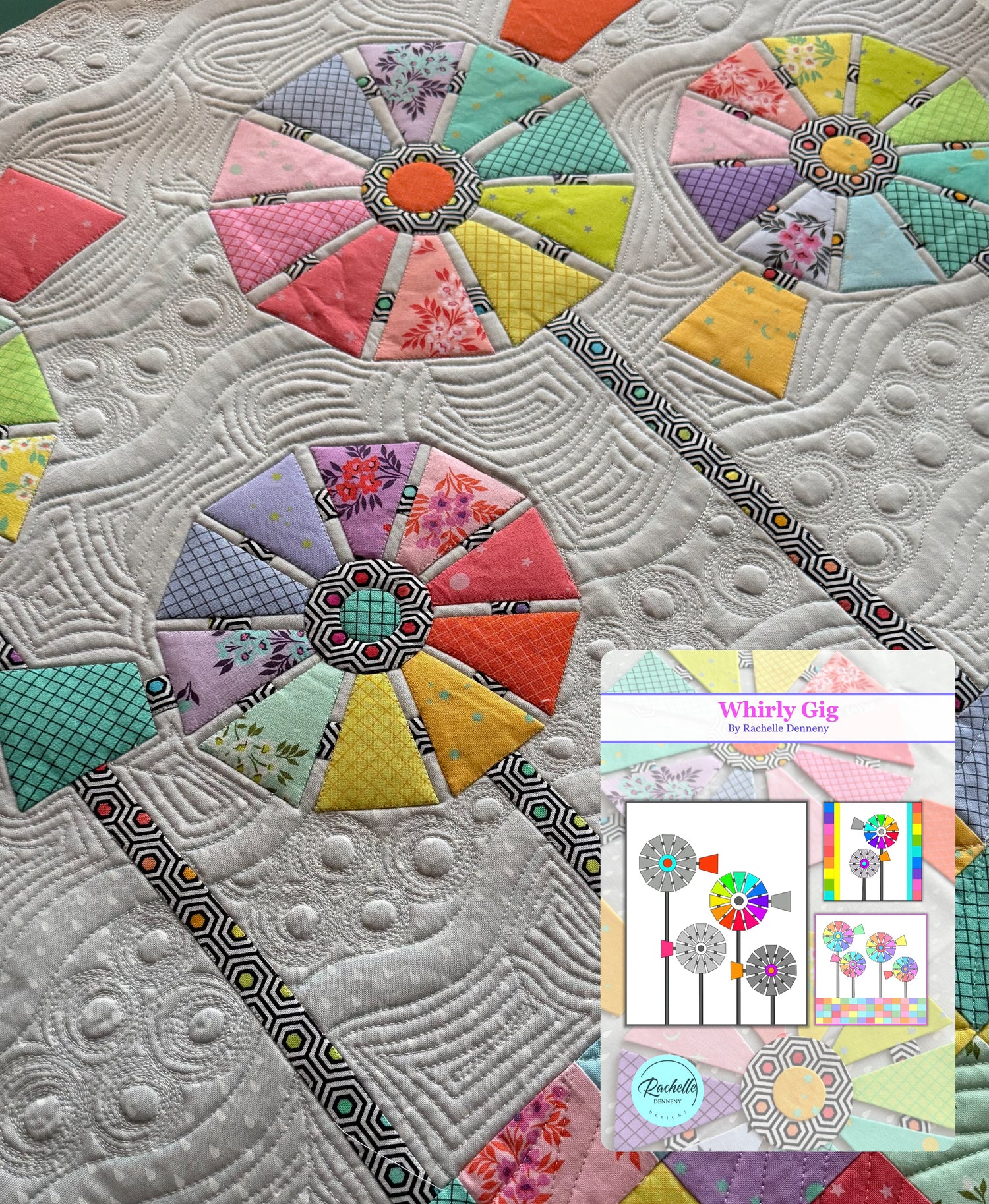 This fun new Windmills applique pattern includes all three designs: