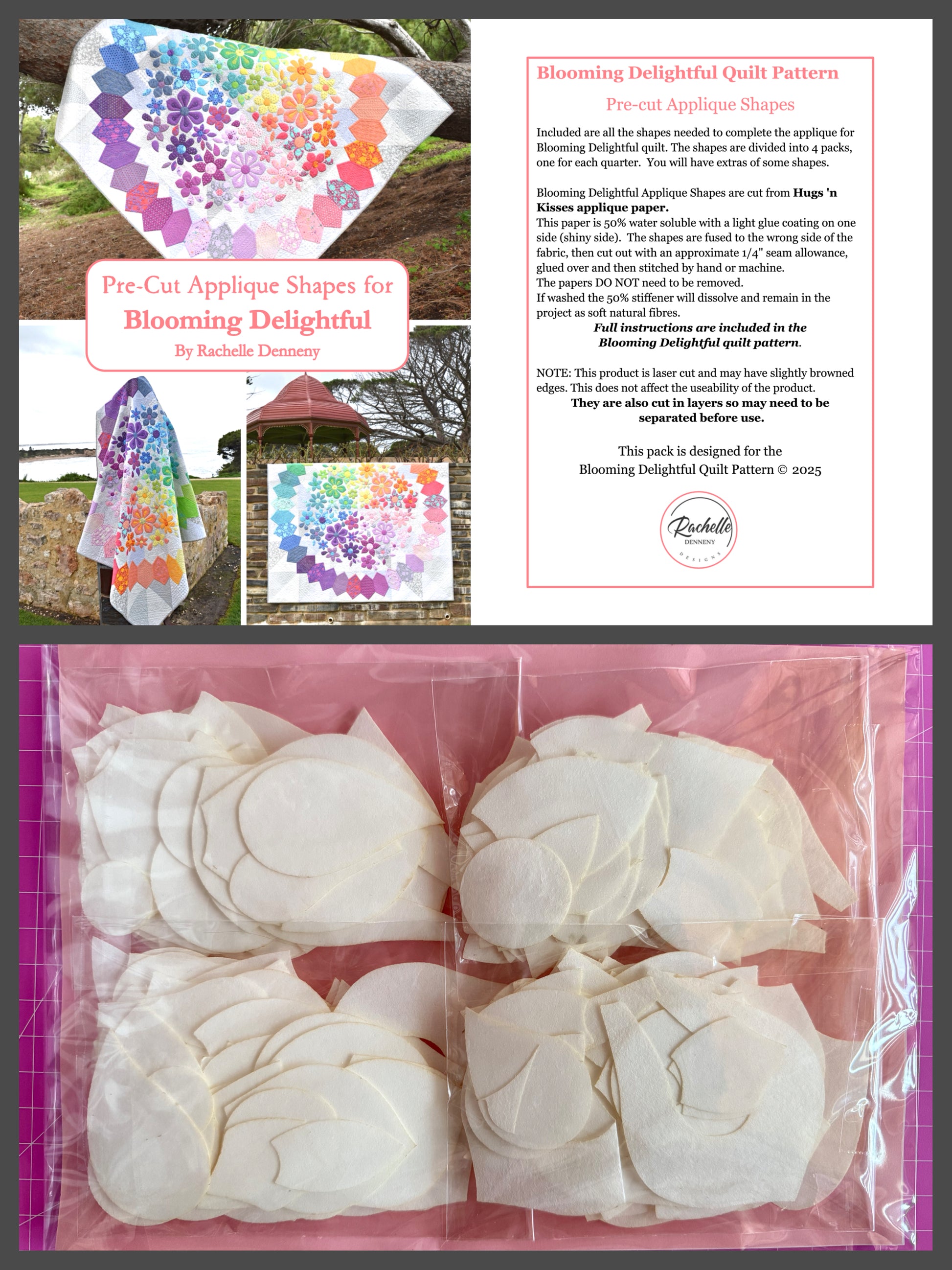 400 plus Pre-Cut Applique Shapes for all the flowers and leaves for the Blooming Delightful Quilt.
