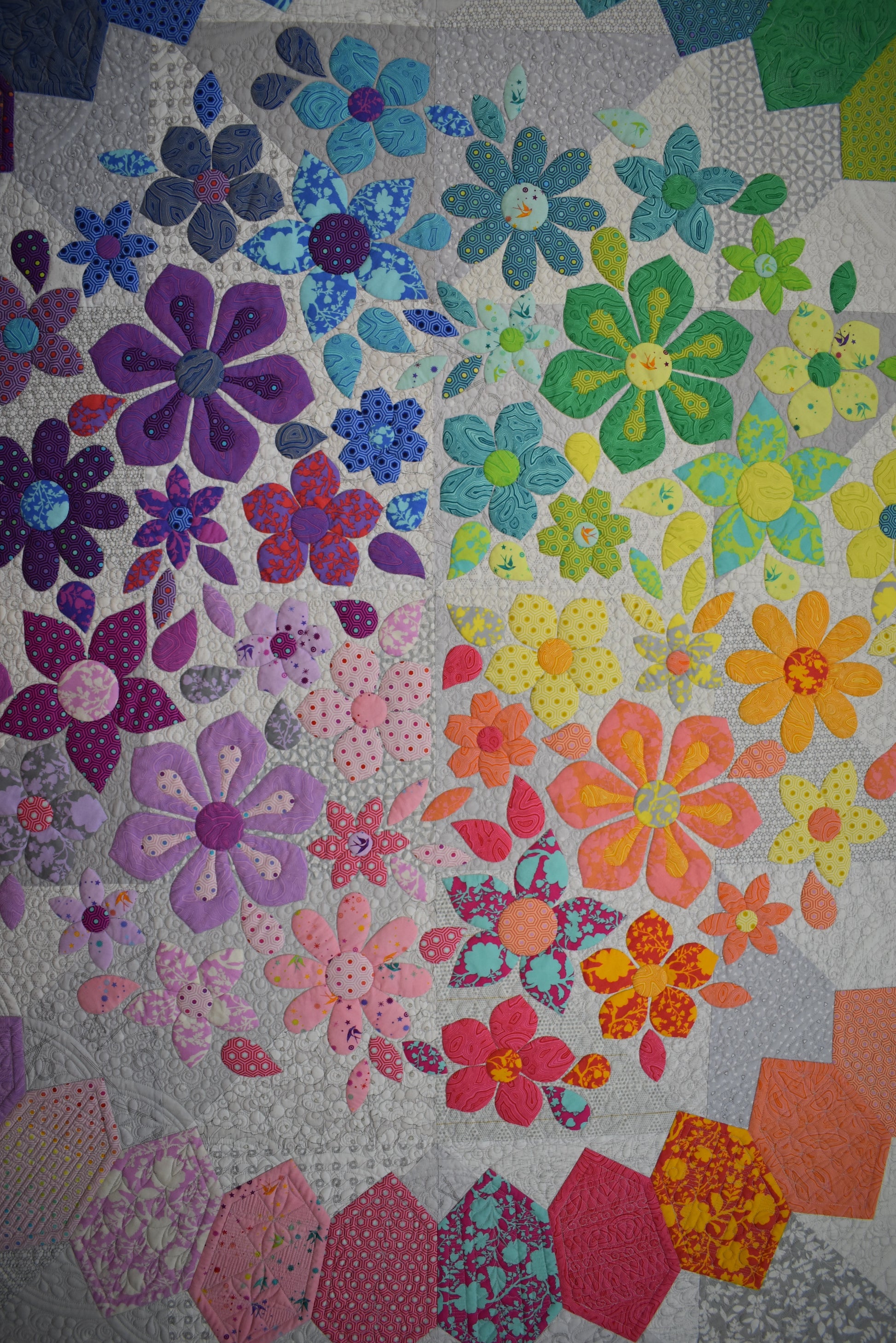 The quilt is made up in quarters for ease of assembly.
