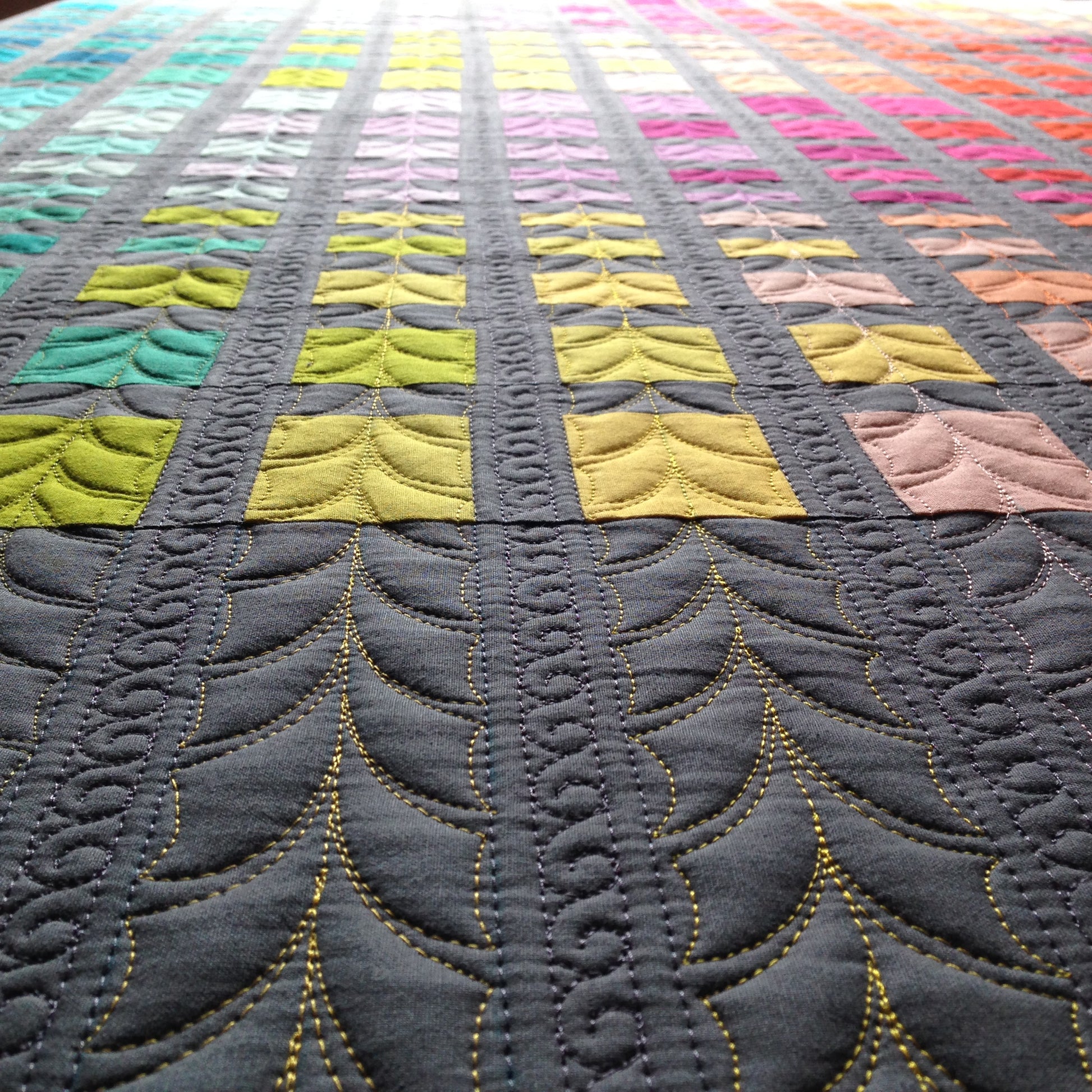 This quilt is a play with colour, movement, simple piecing and negative space. A modern quilt design based on a Traditional Bargello quilt, to create waves and movement. Lots of fun to make using simple strip piecing.