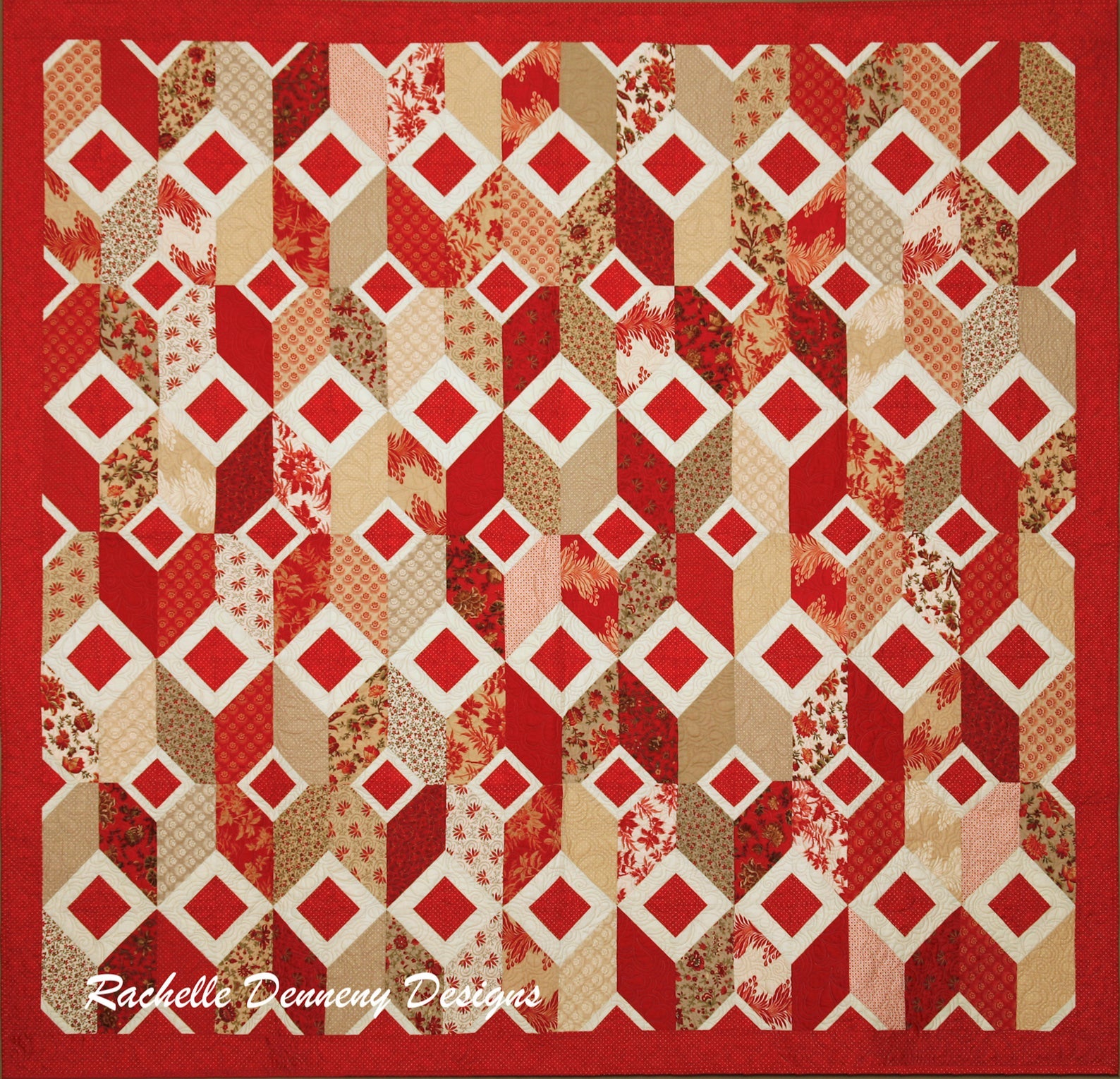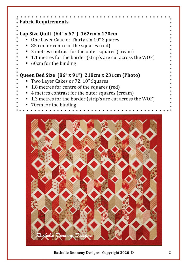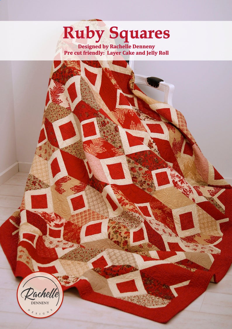 Ruby Squares is a striking geometric quilt design that looks just as fabulous in bright modern fabrics as it does in a stronger dramatic colour selection. The piecing is easier than it looks but does require accurate piecing skills.
