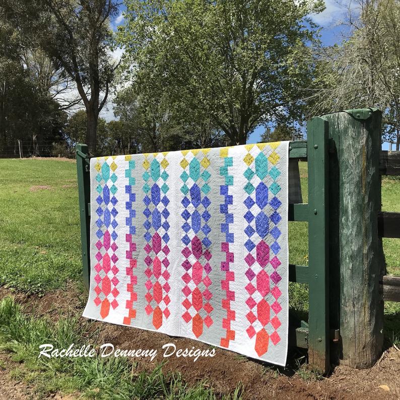 Striking modern style quilt looks great with a selective run of colour or choose to use more variety to create a scrappy style quilt.